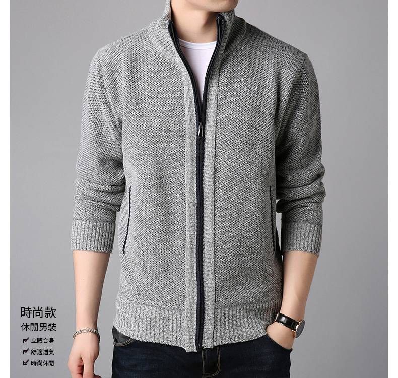 加厚立領男士針織外套【買一送一】【灰色】+【深灰】各一件(到手兩件,每件649元!)