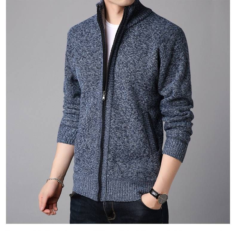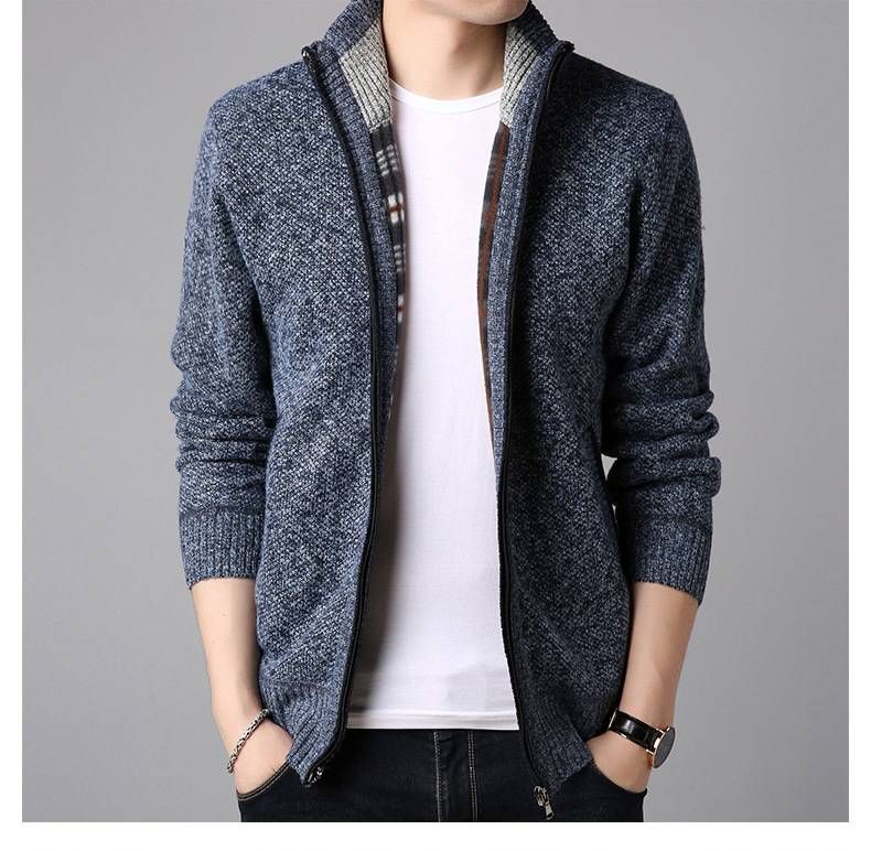 加厚立領男士針織外套【買一送一】【藏青色】+【褐色】各一件(到手兩件,每件649元!)