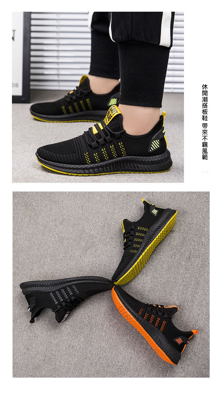 男士夏季軟底防滑輕便透氣休閒鞋【買一送一】【橘色】+【黑黃色】各一雙=1298
