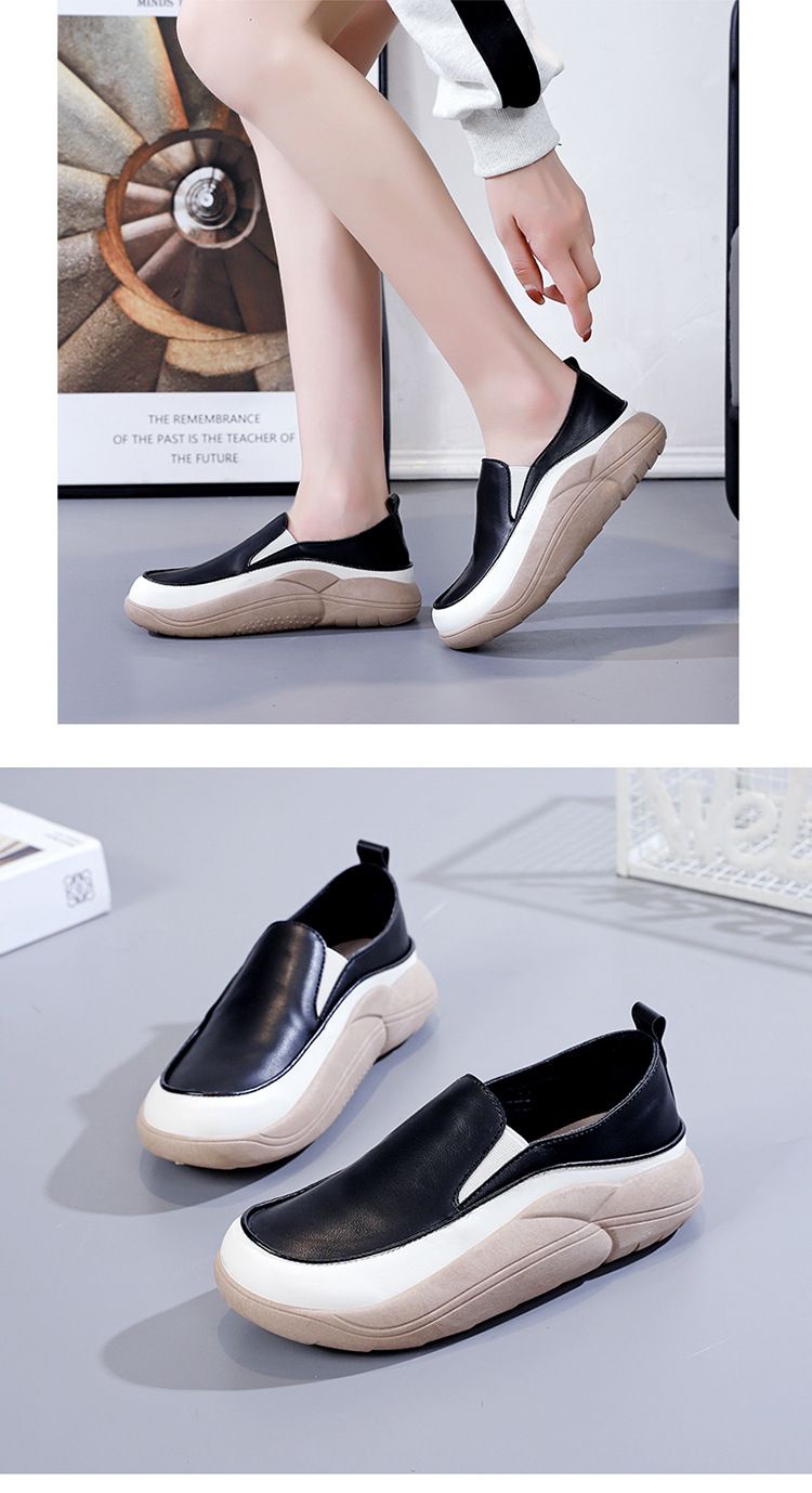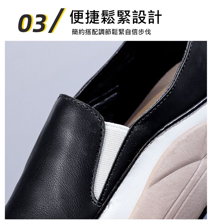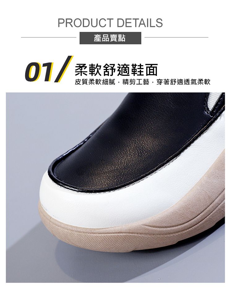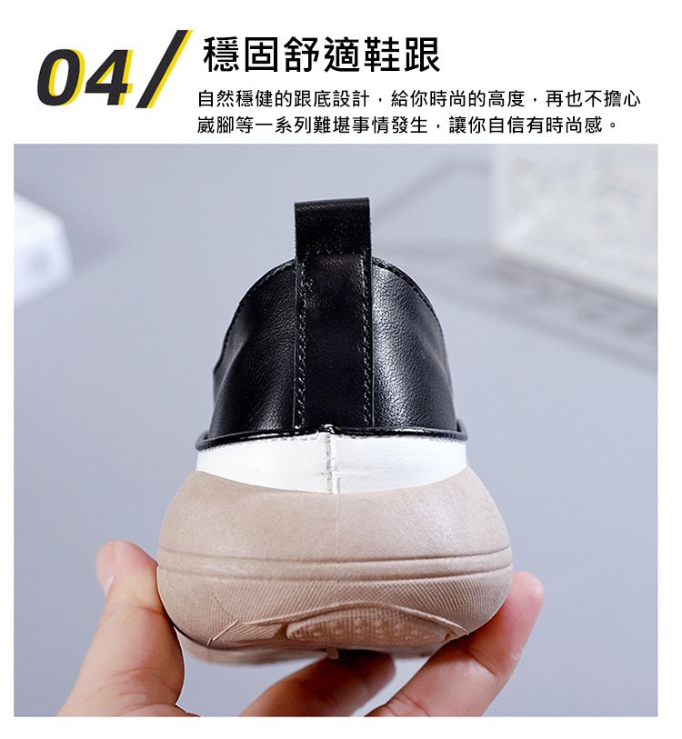 【純色皮革】女士一腳蹬厚底增高休閒小皮鞋【白色】+【黑色】各一雙(優惠400)