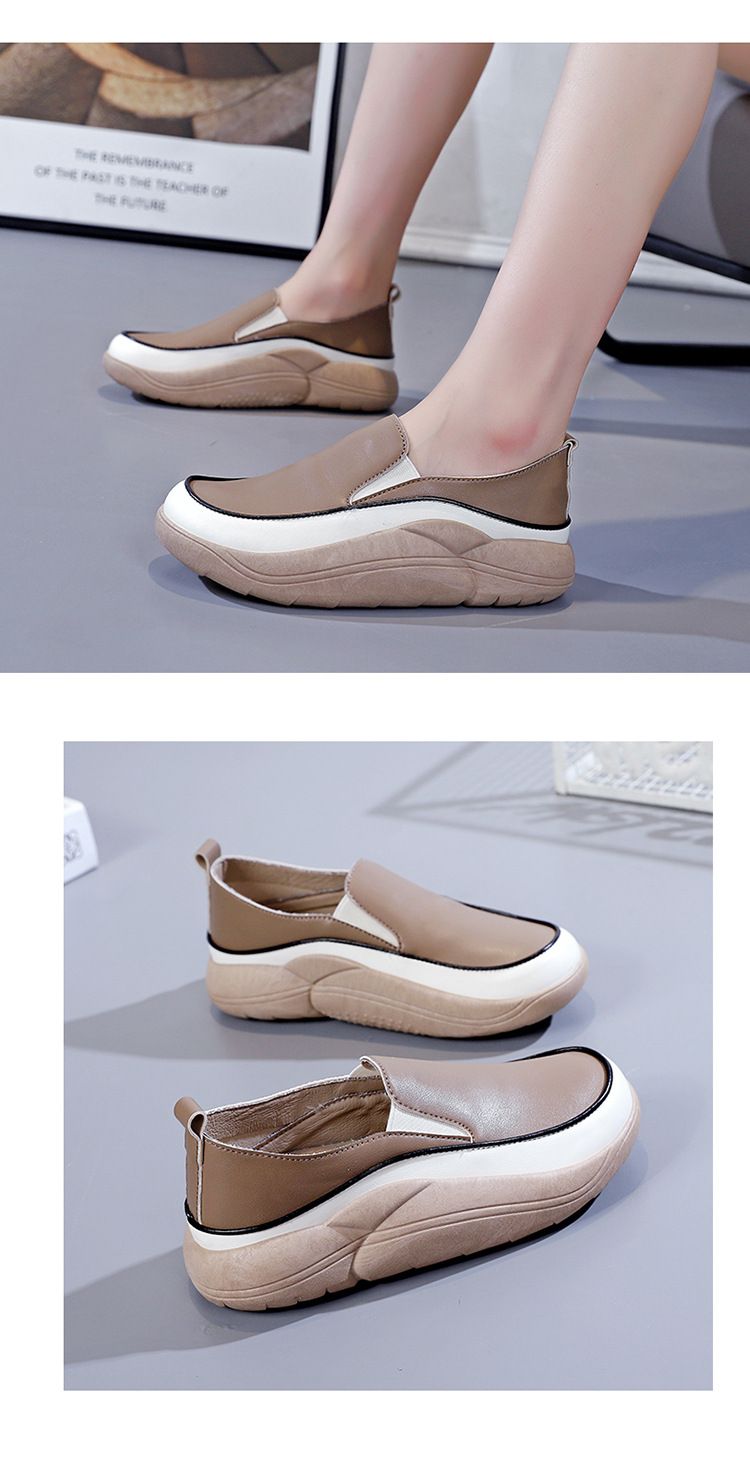 【純色皮革】女士一腳蹬厚底增高休閒小皮鞋【白色】+【棕色】各一雙(優惠400)