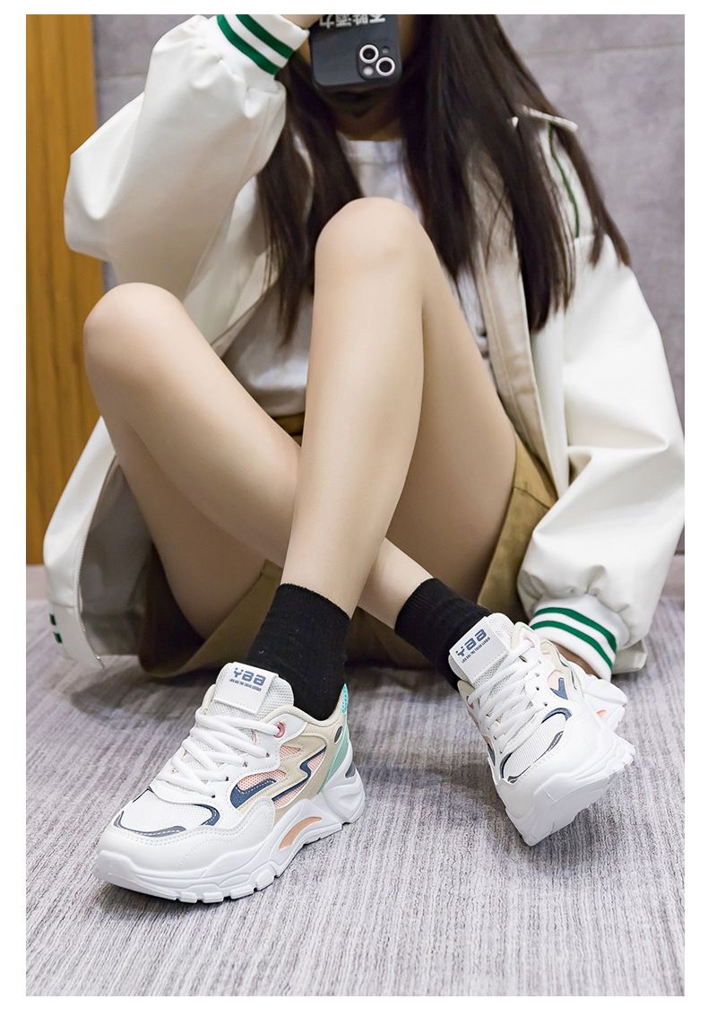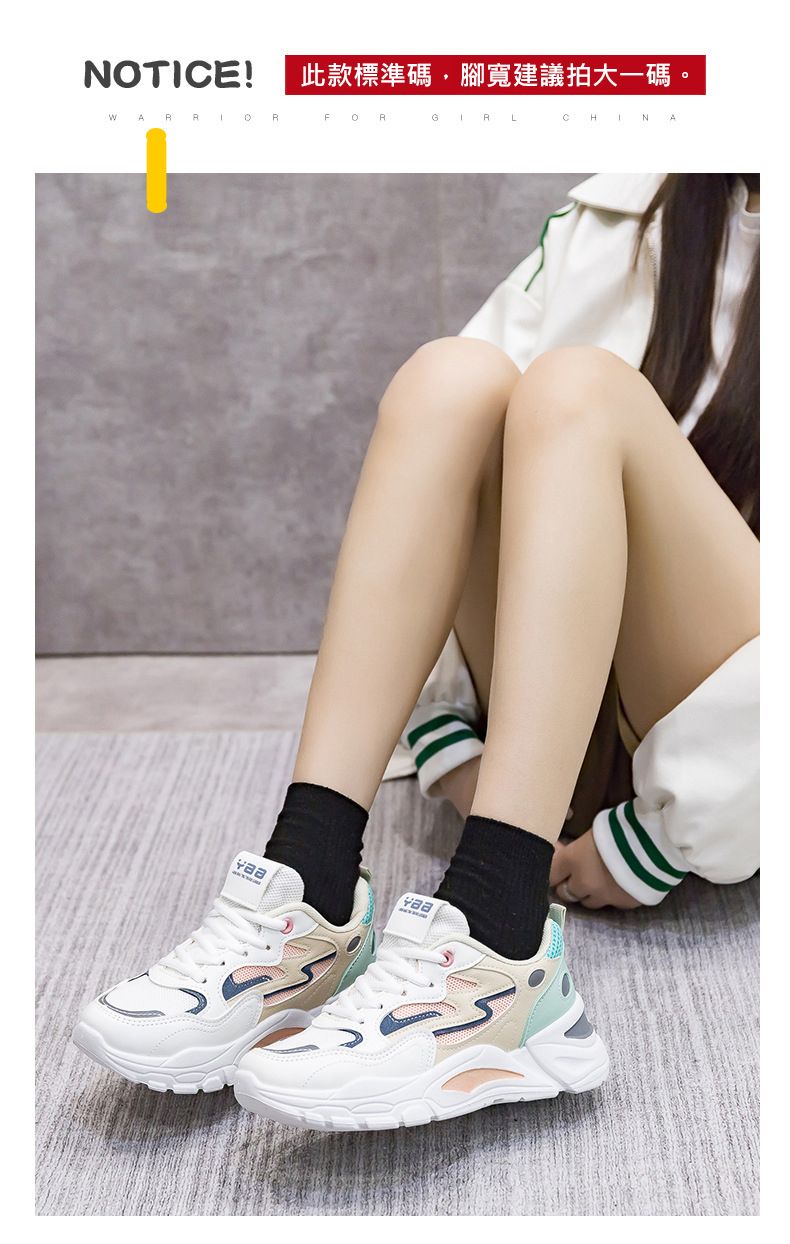 女士網面透氣百搭休閒拼色運動鞋【白蘭色】一雙