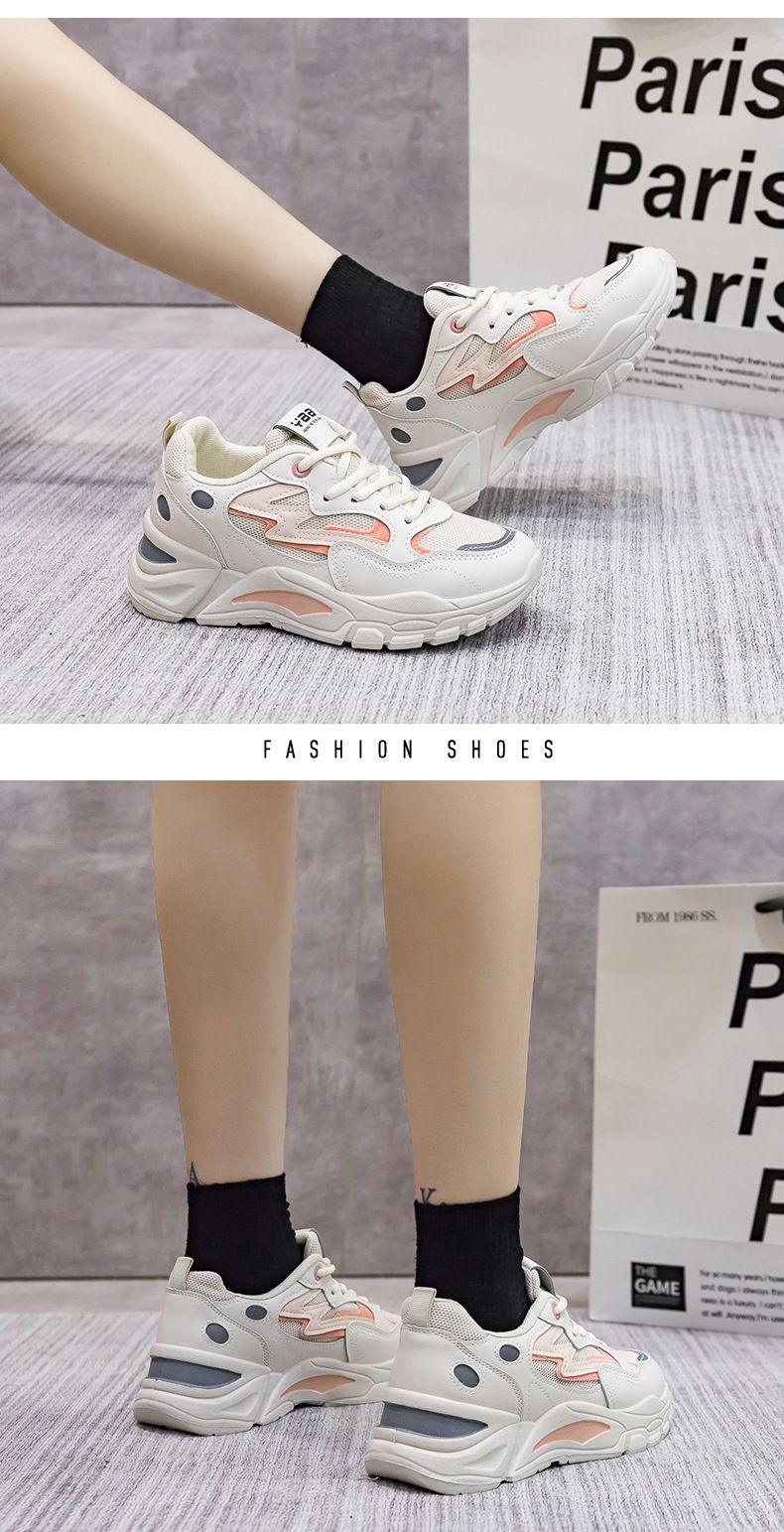 女士網面透氣百搭休閒拼色運動鞋【米粉色】一雙