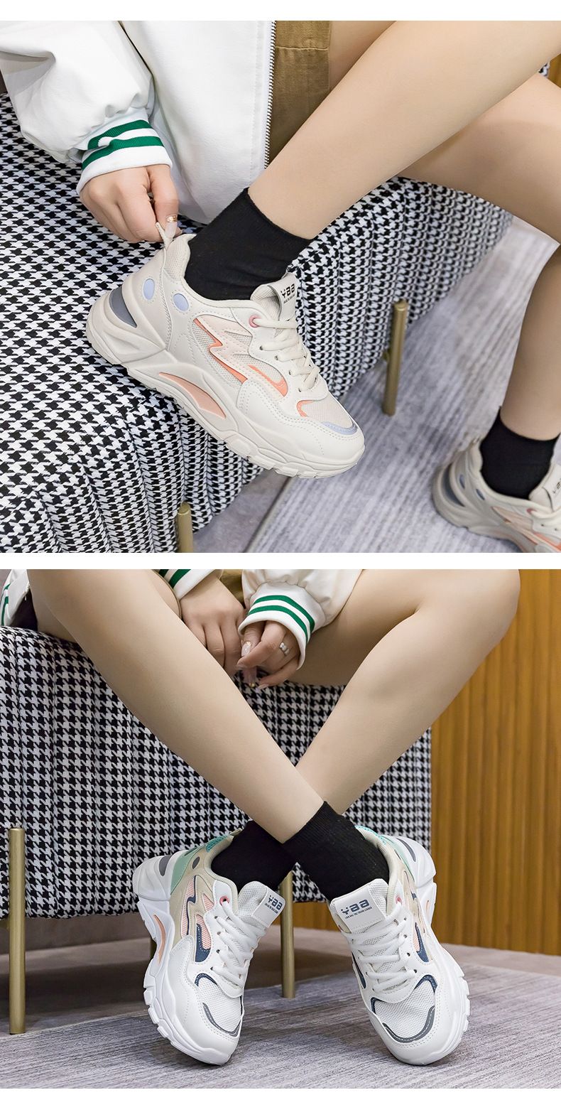 女士網面透氣百搭休閒拼色運動鞋【米粉色】+【白蘭色】各一雙(優惠400)