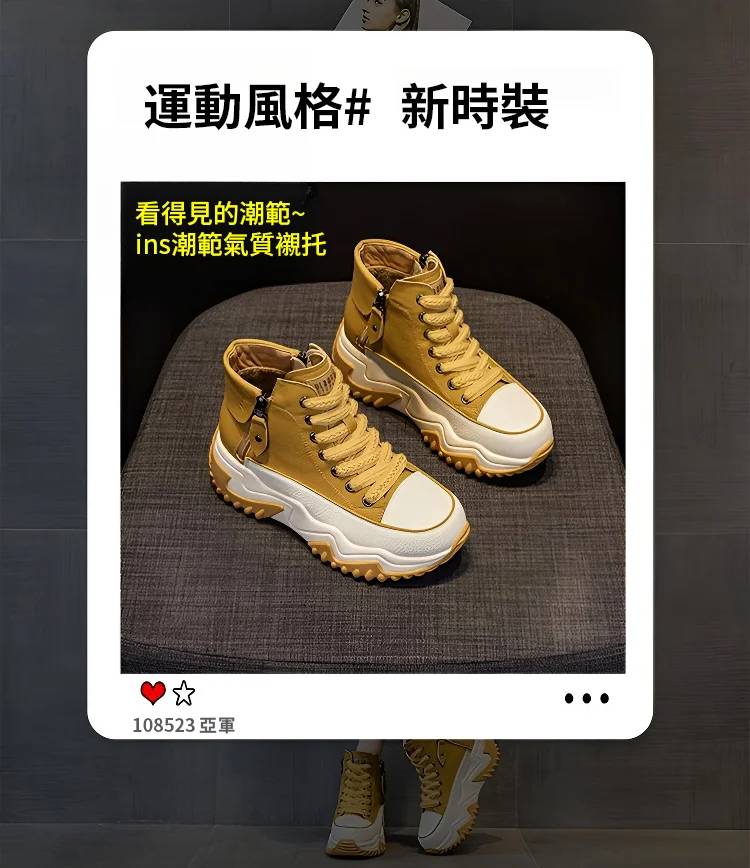 高幫百搭增高雙拉鏈女靴【限時買一送一】黃色+紅色各一雙(到手兩雙,每雙749元!)