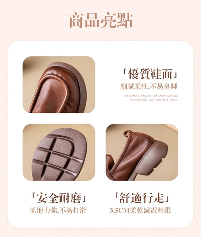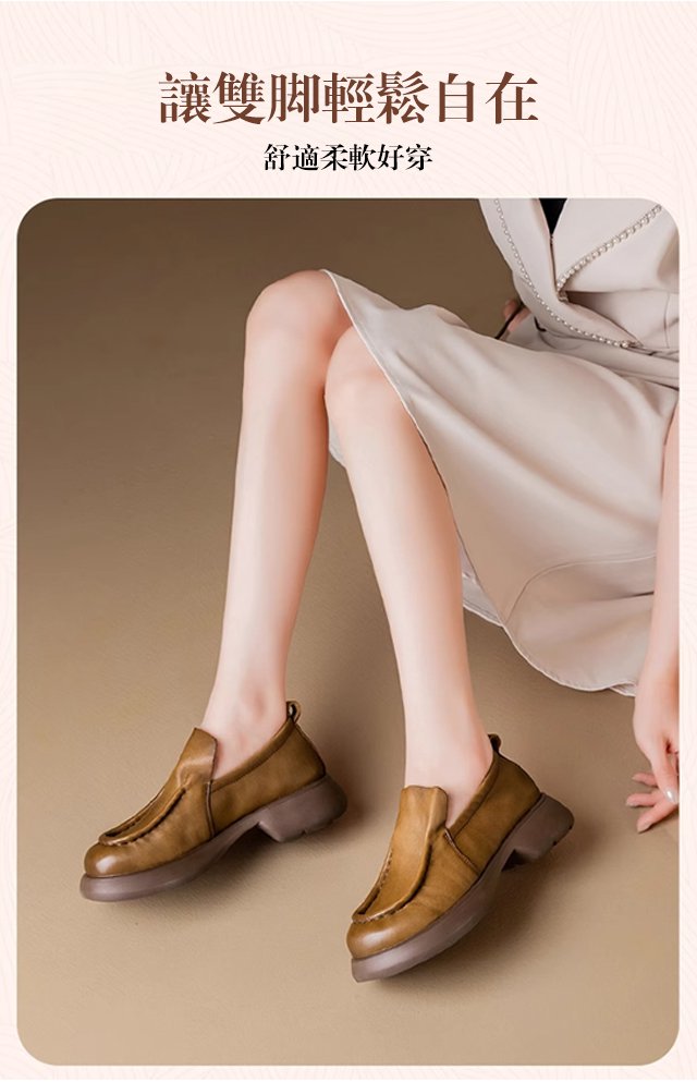 復古手作舒適軟底媽媽鞋【買一送一】【卡其色】+【深棕色】各一雙(到手兩雙,每雙649元!)