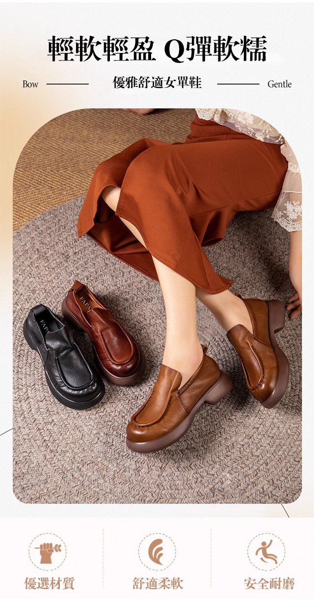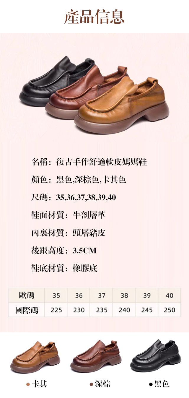 復古手作舒適軟底媽媽鞋【秒殺3雙!】【黑色】+【卡其色】+【深棕色】各一雙(到手三雙,每雙500元!)