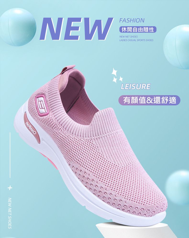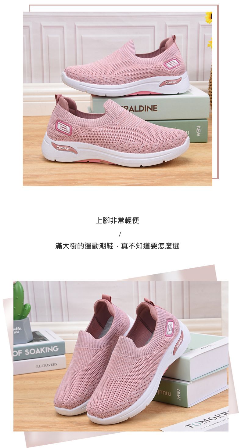 中老年透氣飛織休閒軟底女鞋【買一送一】粉色兩雙
