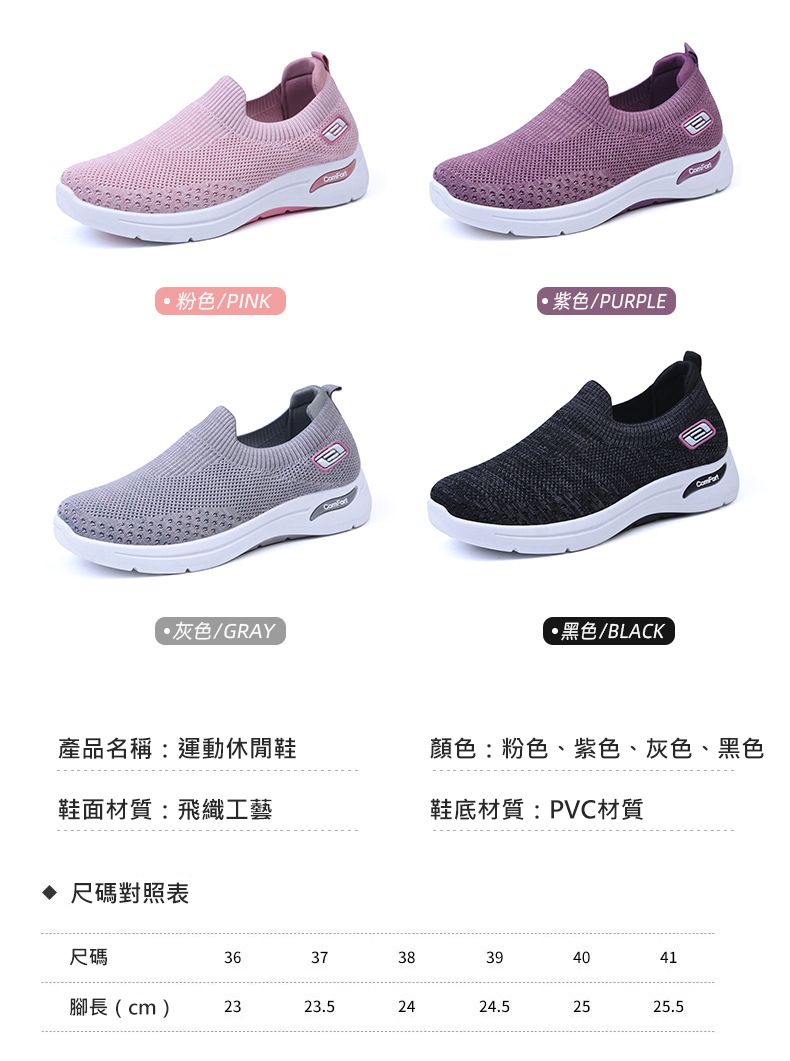 中老年透氣飛織休閒軟底女鞋【買一送一】粉色+紫色各一雙