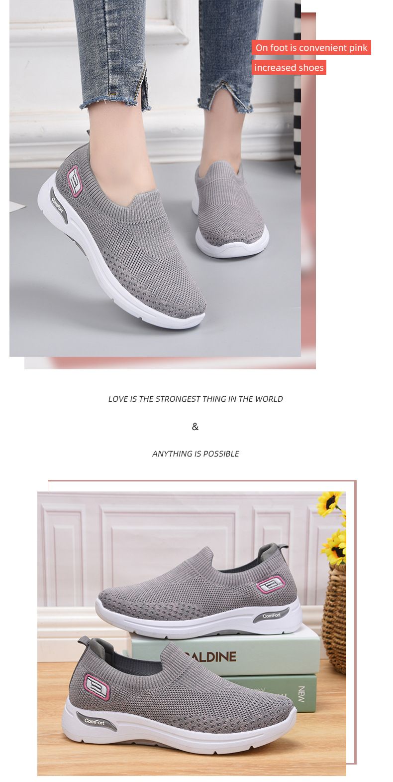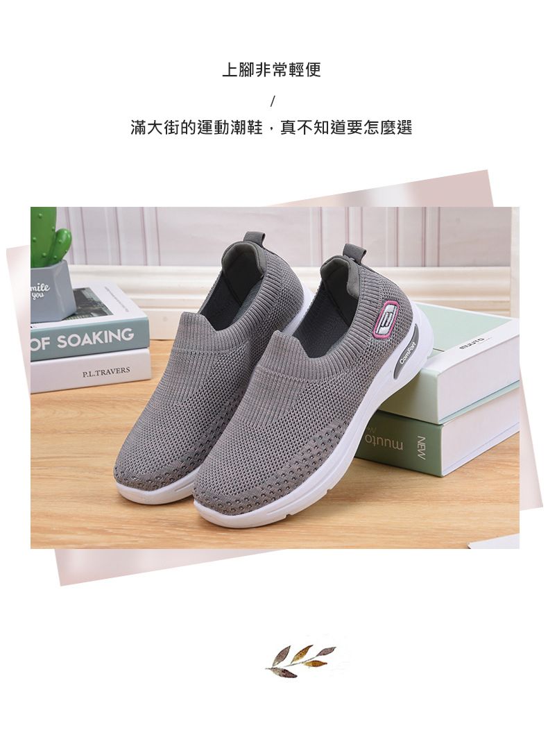 中老年透氣飛織休閒軟底女鞋【買一送一】灰色+粉色各一雙