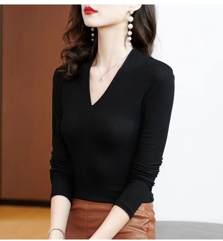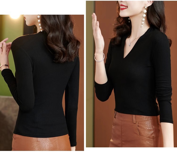V領雙面德絨顯瘦收腰上衣【買一送二】黑色+白色+灰色各一件(到手三件,每件333元!)