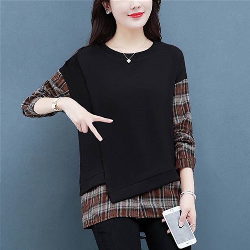 格子拼接純棉假兩件套【買一送一】黑色兩件(到手兩件,每件499元!)