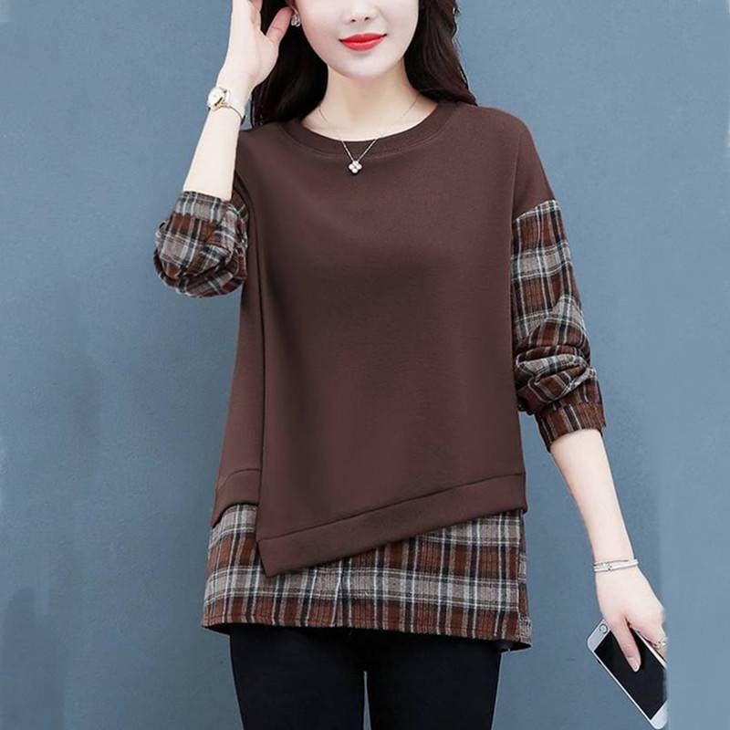 格子拼接純棉假兩件套【買一送一】咖色兩件(到手兩件,每件499元!)