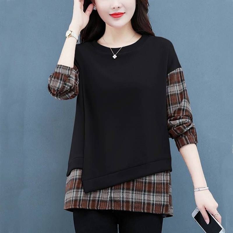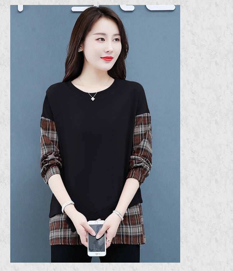 格子拼接純棉假兩件套【買一送一】黑色+咖色各一件(到手兩件,每件499元!)