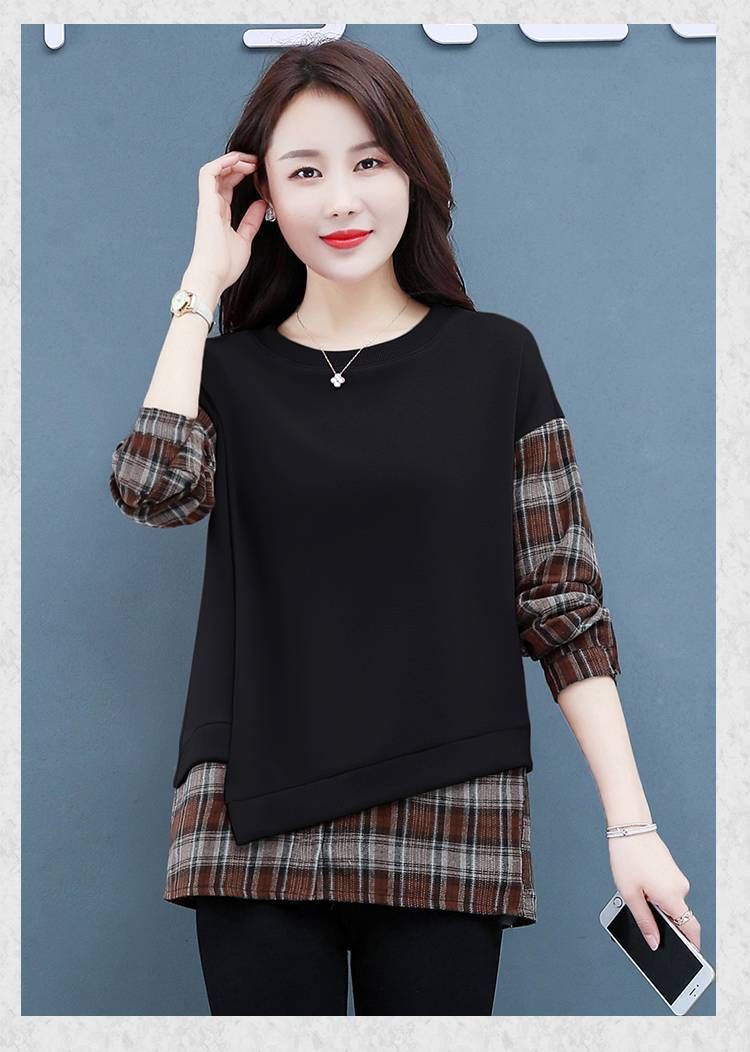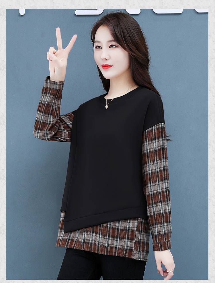 格子拼接純棉假兩件套【秒殺4件!】黑色+咖色各兩件(到手四件,每件399元!)