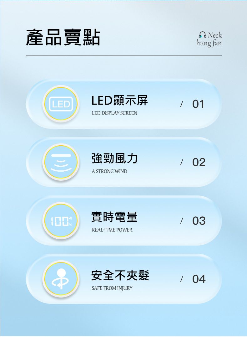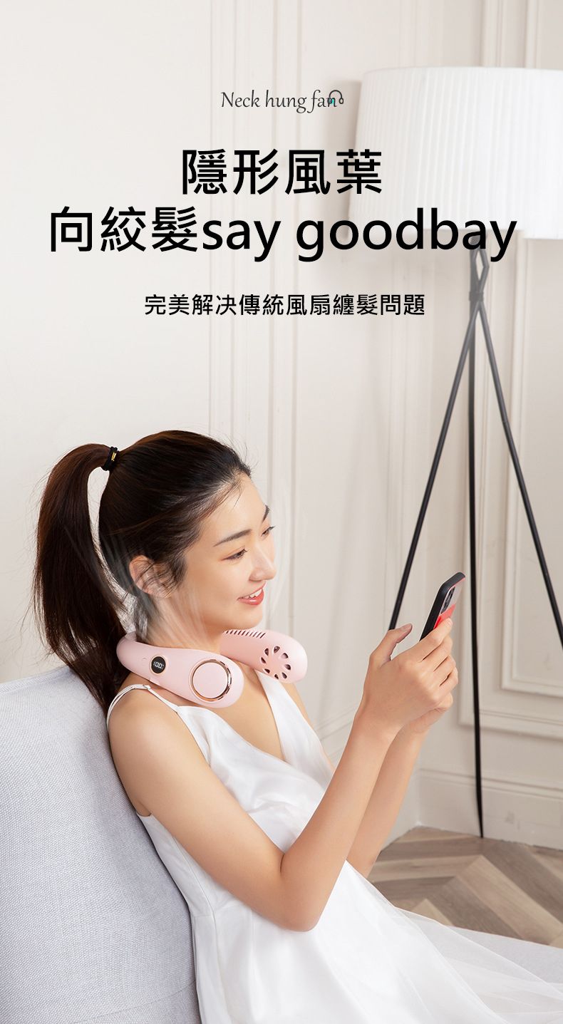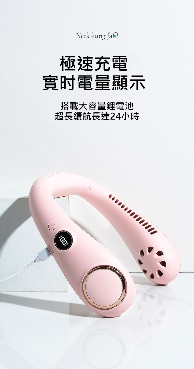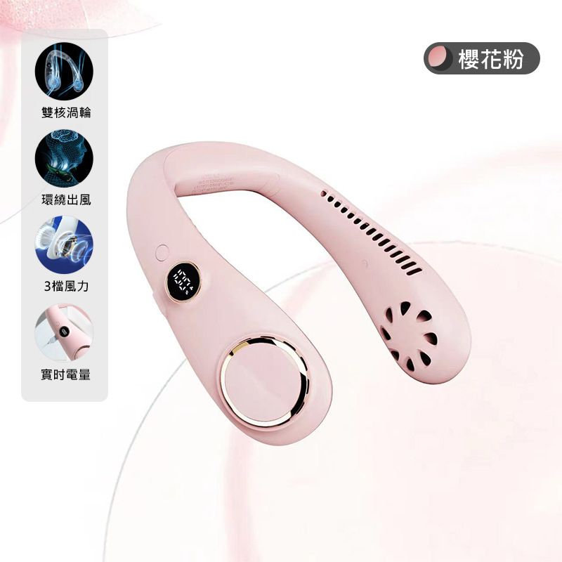 新款usb便攜數顯無葉掛脖風扇【冰川白】+【櫻花粉】各一組(優惠400)