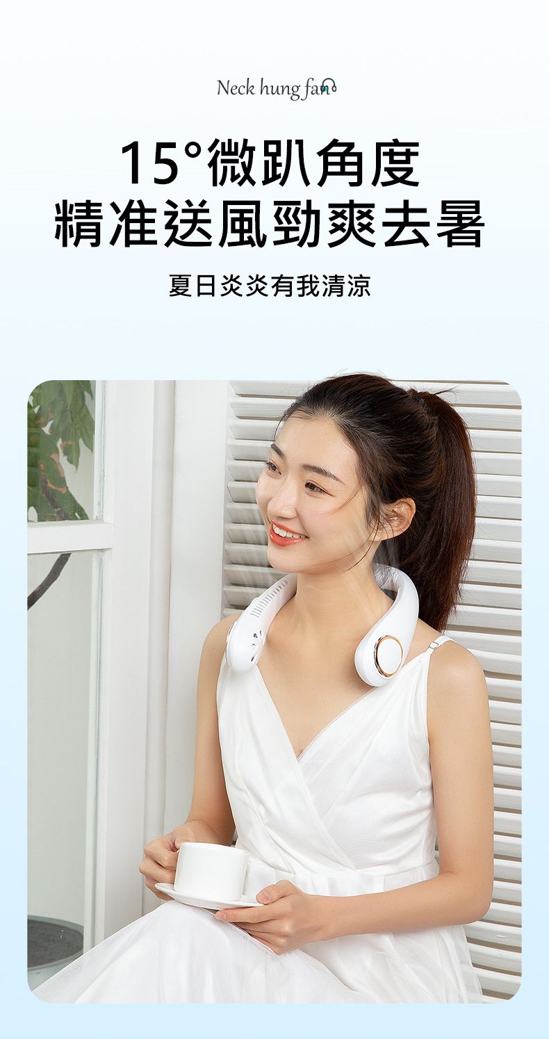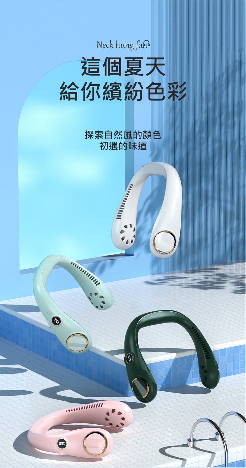 新款usb便攜數顯無葉掛脖風扇【冰川白】+【茉香綠】各一組(優惠400)