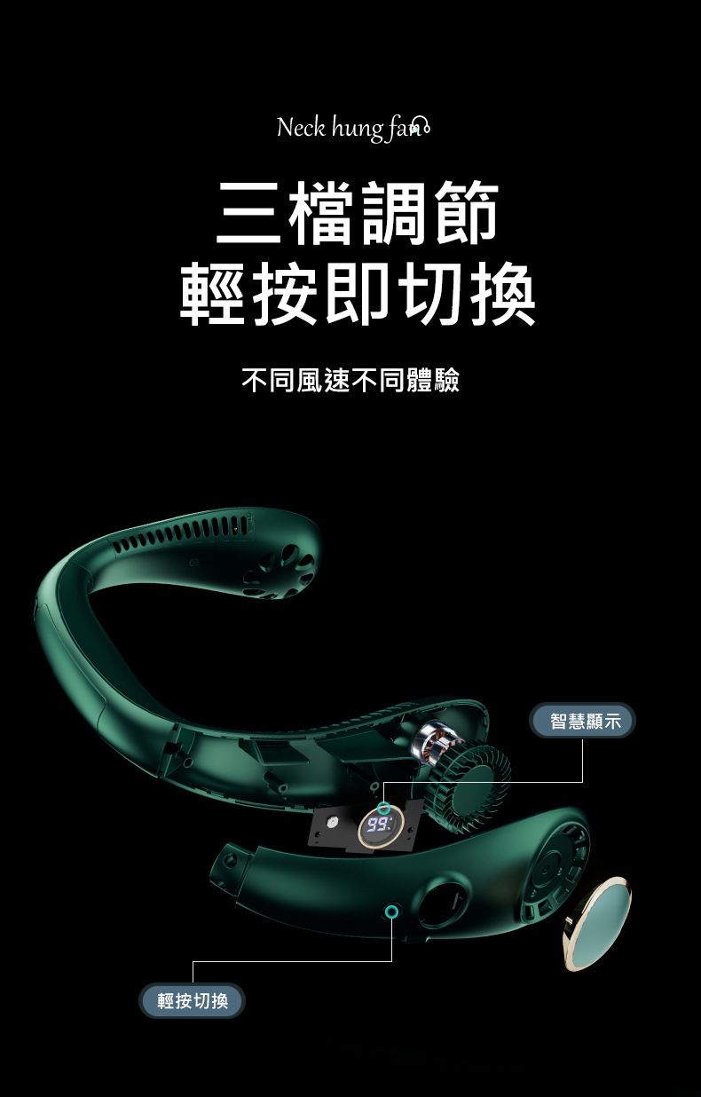 新款usb便攜數顯無葉掛脖風扇【暗夜綠】+【茉香綠】各一組(優惠400)