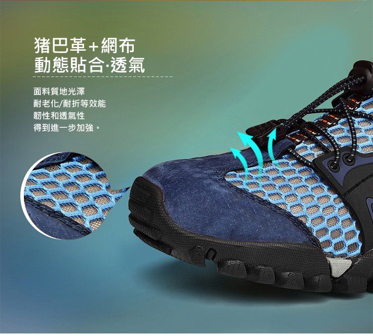 新款男士網面透氣爬山涉水溯溪鞋【軍綠色】+【藍色】各一雙(優惠400)