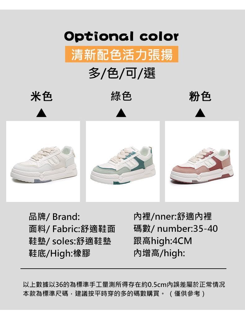 【各種場合隨心穿!】新款女士春季韓版休閒板鞋【米粉色】+【米綠色】各一雙(優惠400)