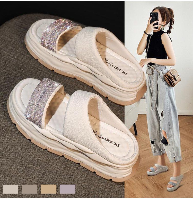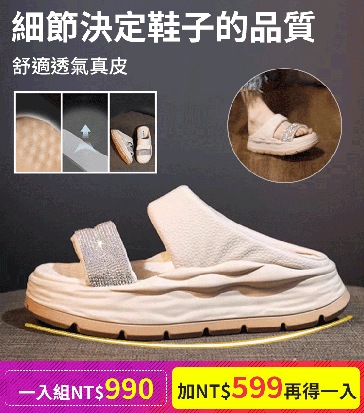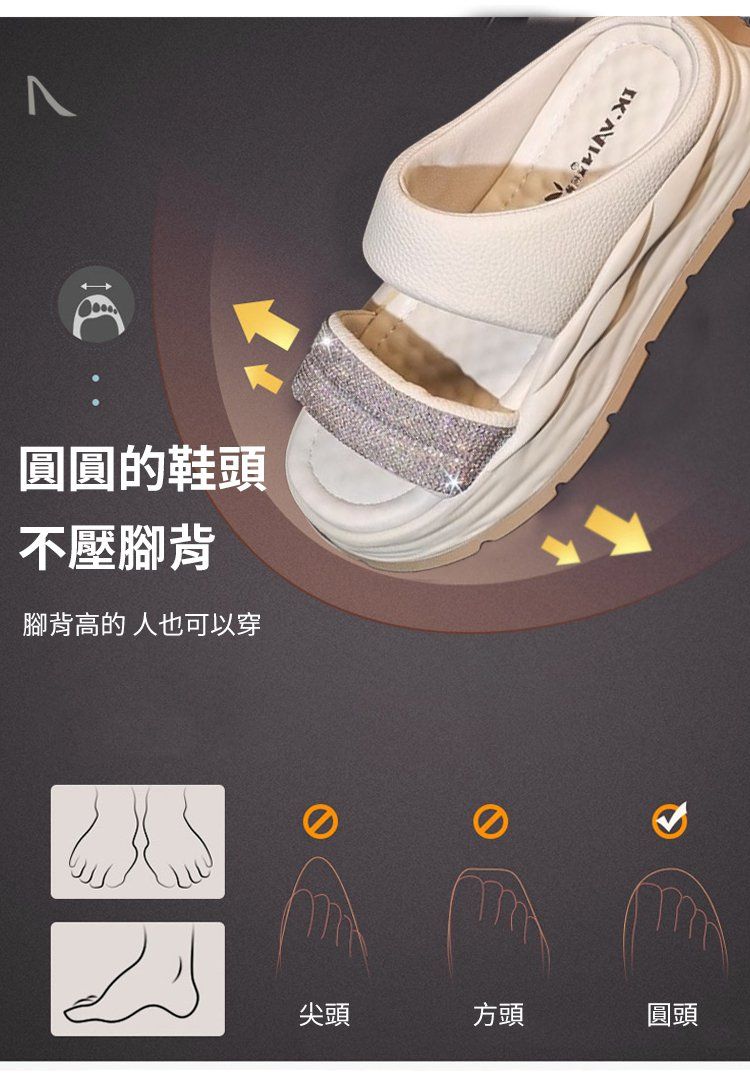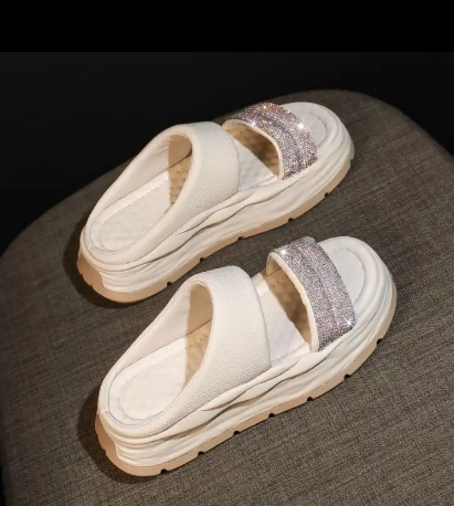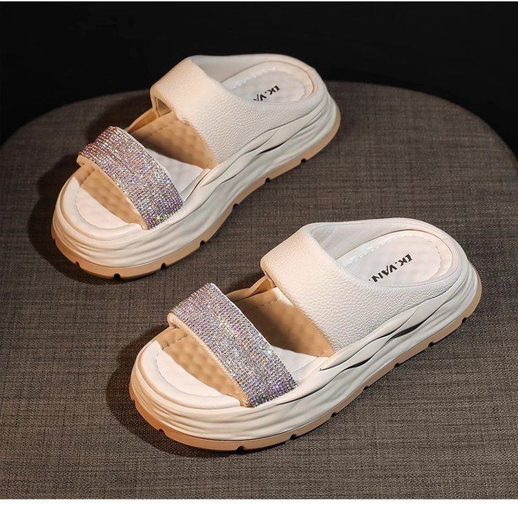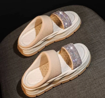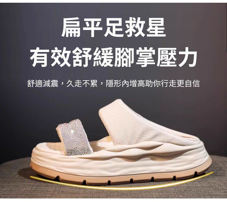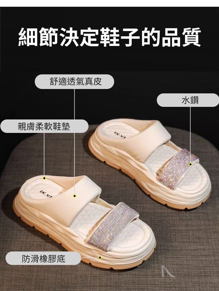時尚爆款閃耀水鑽涼拖【米白色】一雙