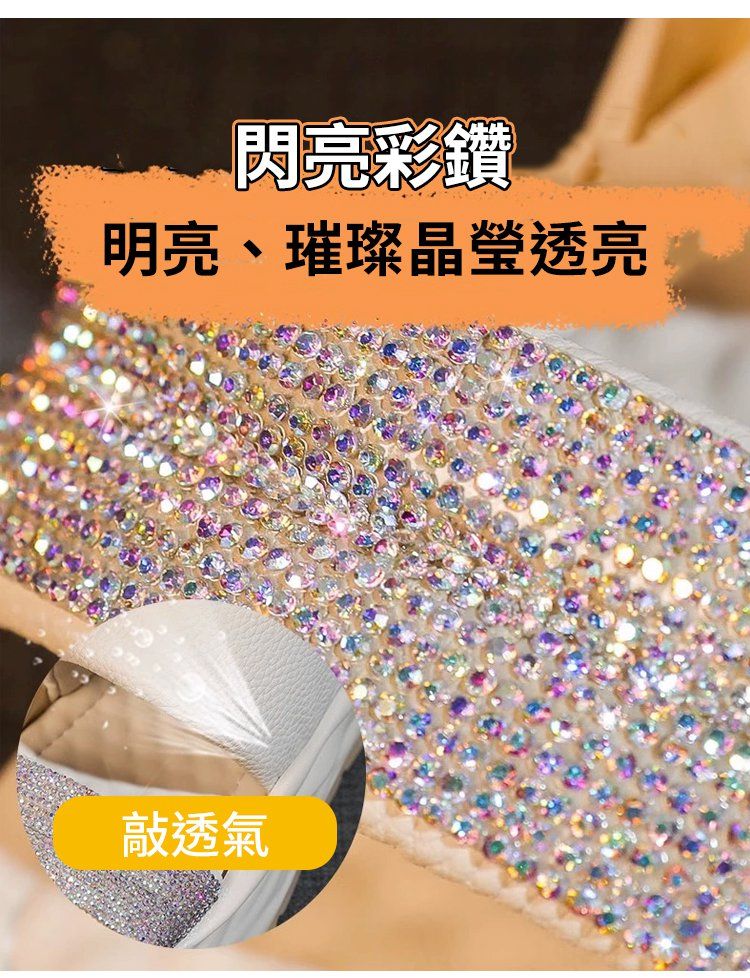 時尚爆款閃耀水鑽涼拖【米白色】+【奶茶色】各一雙