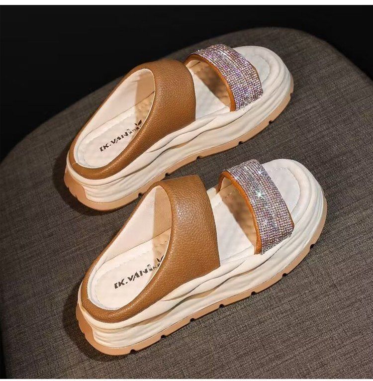 時尚爆款閃耀水鑽涼拖【奶茶色】一雙