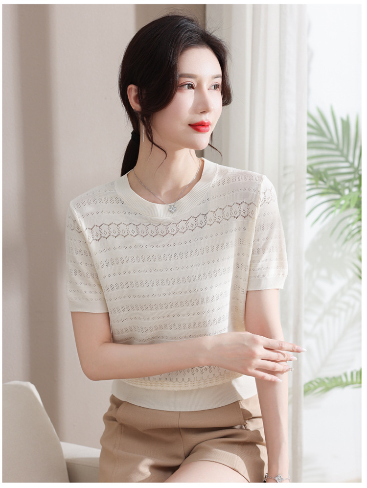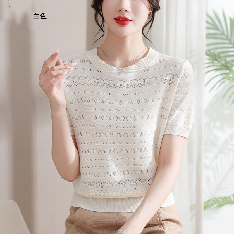 圓領薄款冰絲短袖【白色】一件