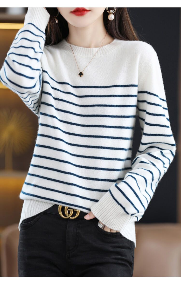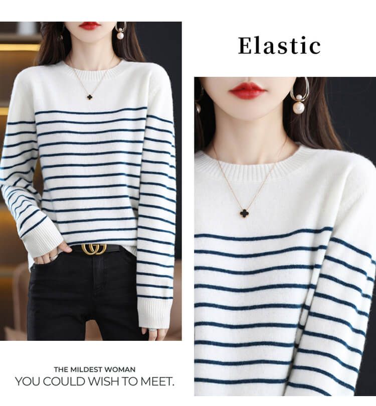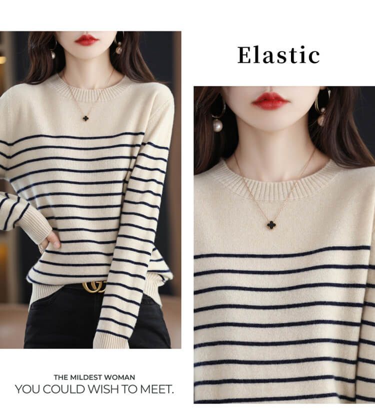 條紋秋冬女士針織衫【買一送二】白色+杏色+駝色各一件(到手三件,每件333元!)