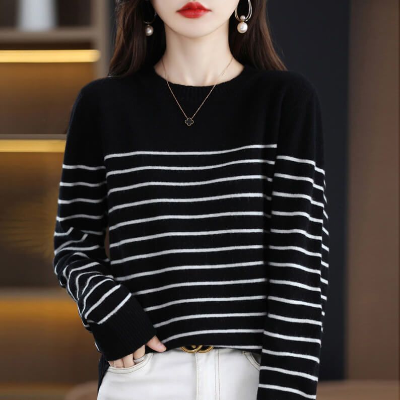 條紋秋冬女士針織衫【買一送二】白色+杏色+黑色各一件(到手三件,每件333元!)