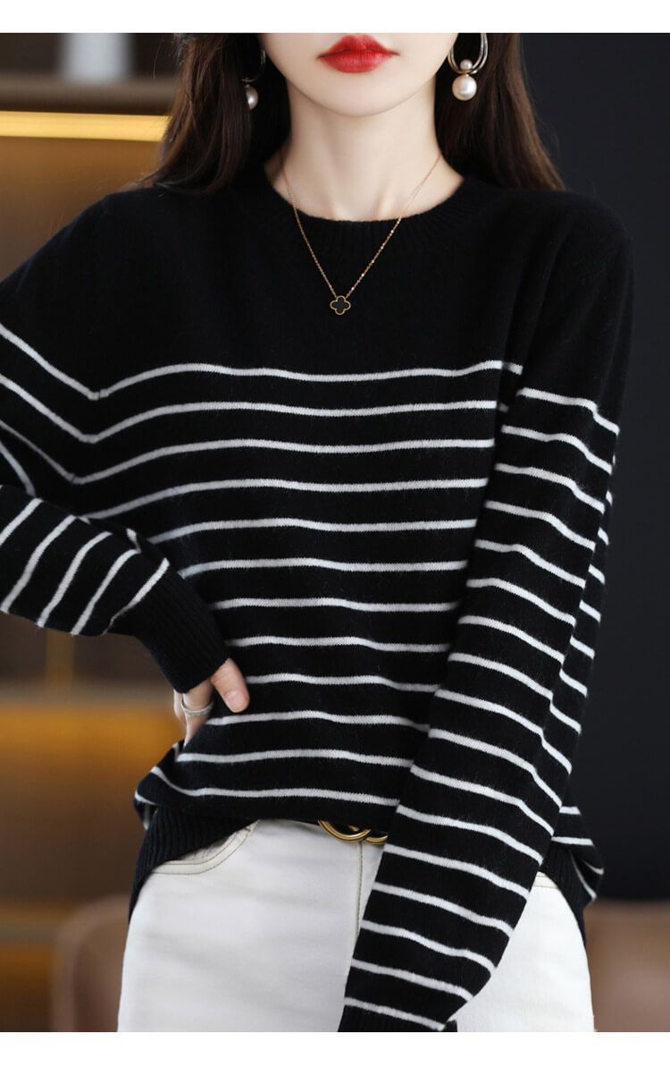條紋秋冬女士針織衫【買一送二】白色+駝色+黑色各一件(到手三件,每件333元!)