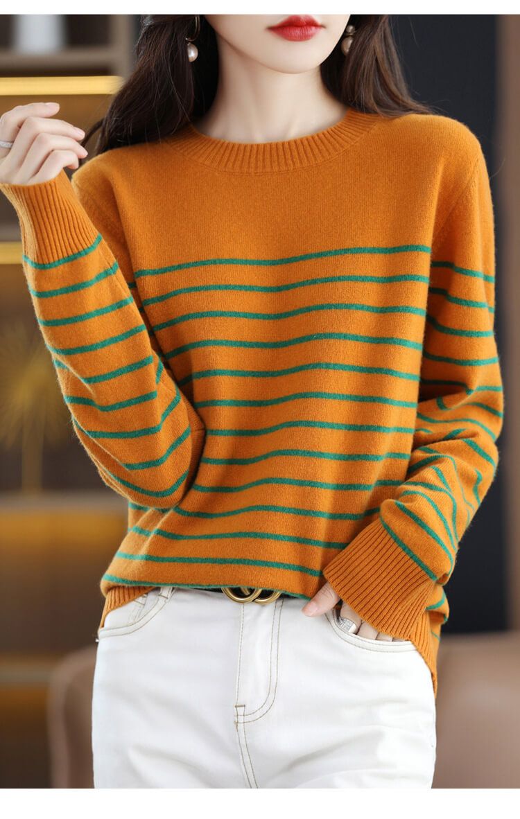 條紋秋冬女士針織衫【秒殺6件!】白色+杏色+駝色+咖色+桔黃色+黑色各一件(到手6件,每件266元!)