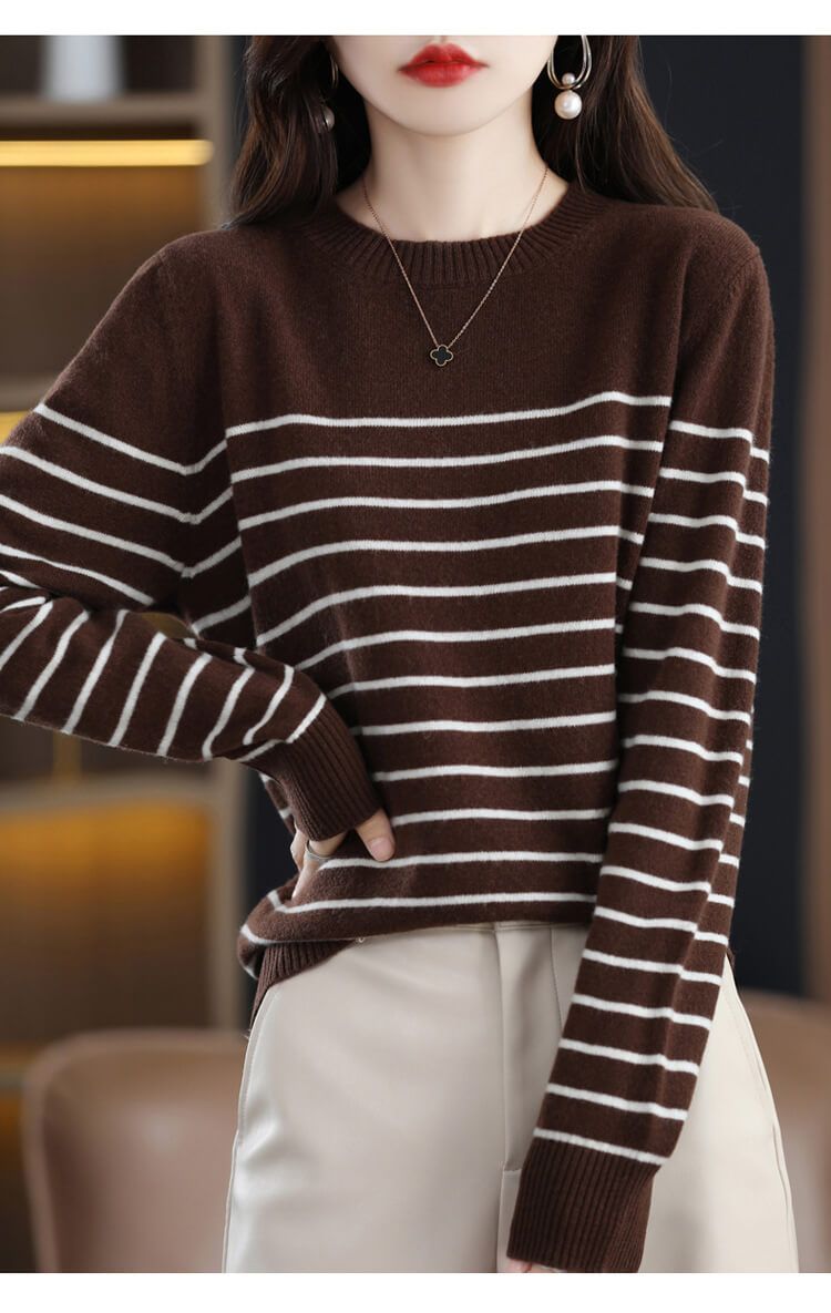條紋秋冬女士針織衫【買一送二】駝色+咖色+黑色各一件(到手三件,每件333元!)