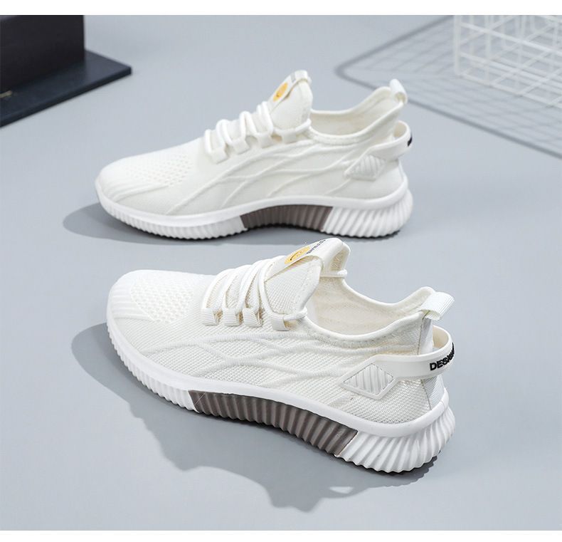 【小個子也能大長腿!】春夏女士新款飛織透氣鞋【白色】+【米白色】各一雙(優惠400)