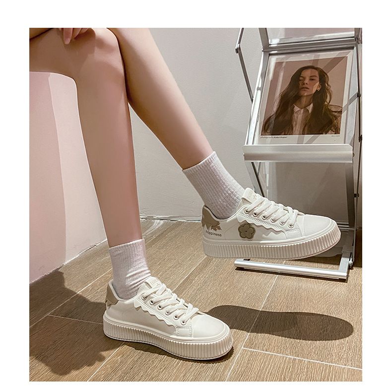 【舒適有顏值!】新款女士厚底增高休閒運動鞋【白粉色】+【卡其色】各一雙(優惠400)