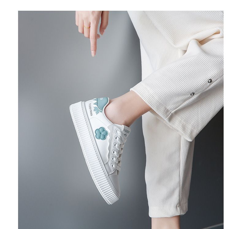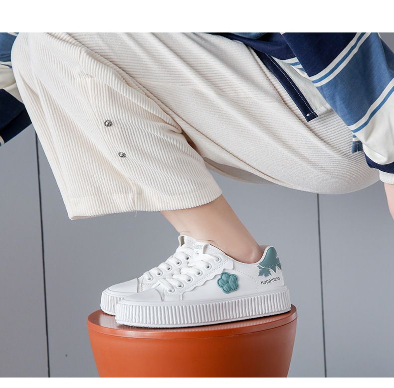 【舒適有顏值!】新款女士厚底增高休閒運動鞋【白綠色】一雙