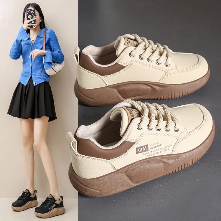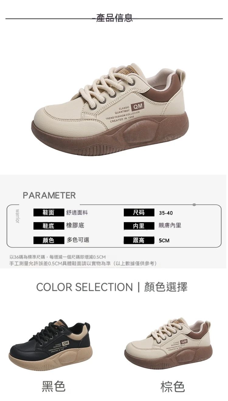 0差評爆款厚底百搭女士休閒鞋【買一送一】黑色+卡其色各一雙(到手兩雙,每雙649元!)