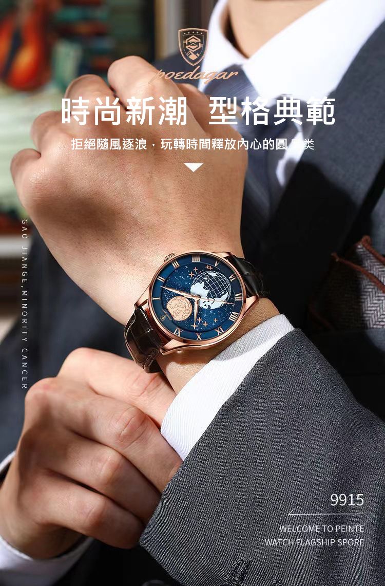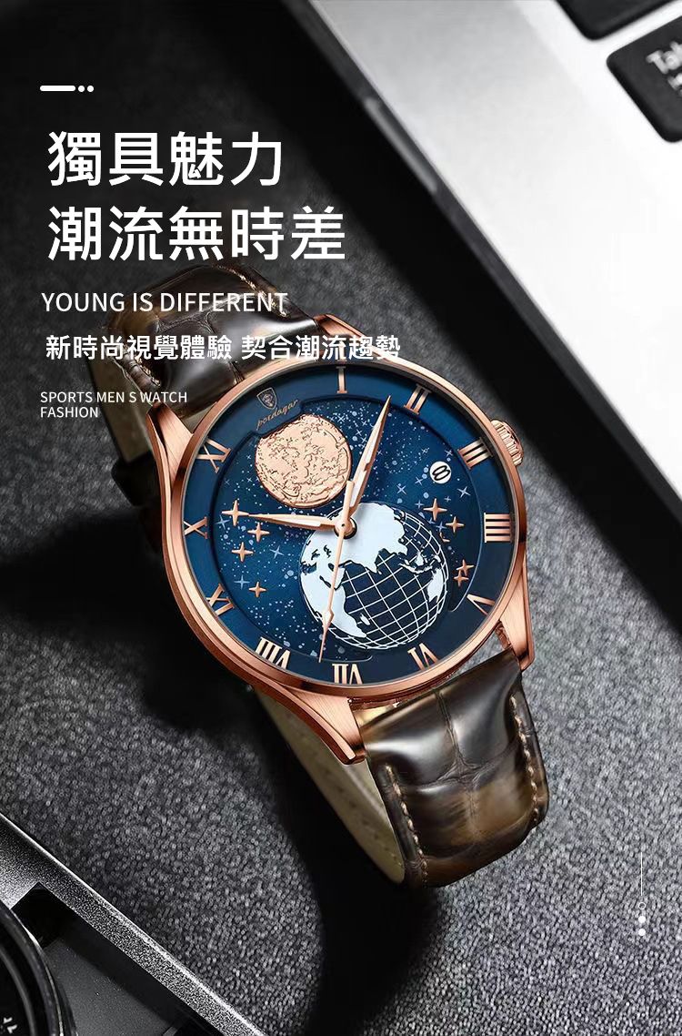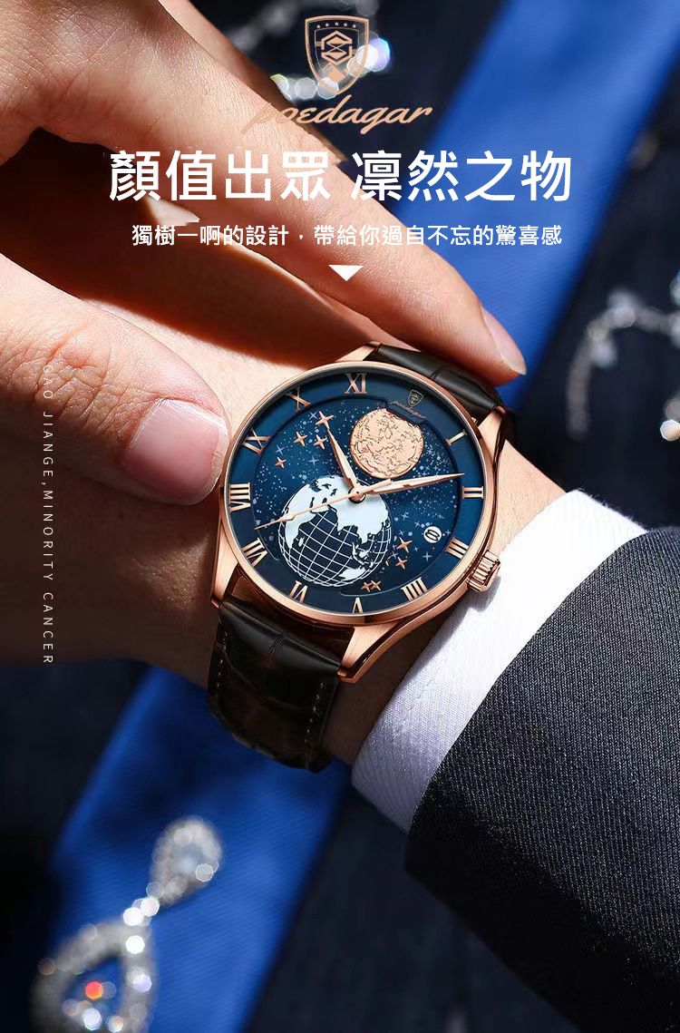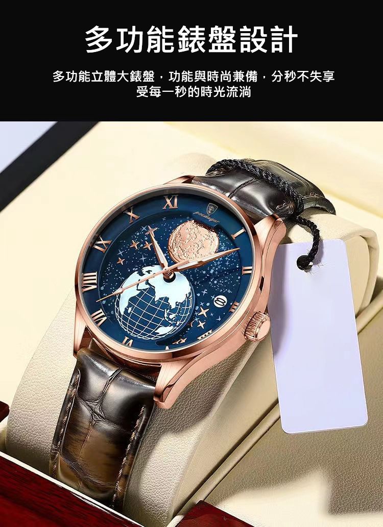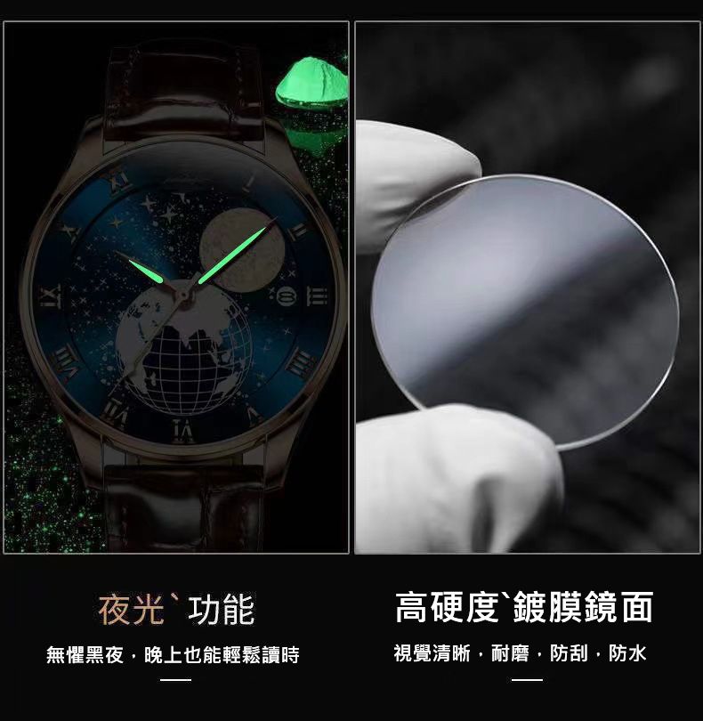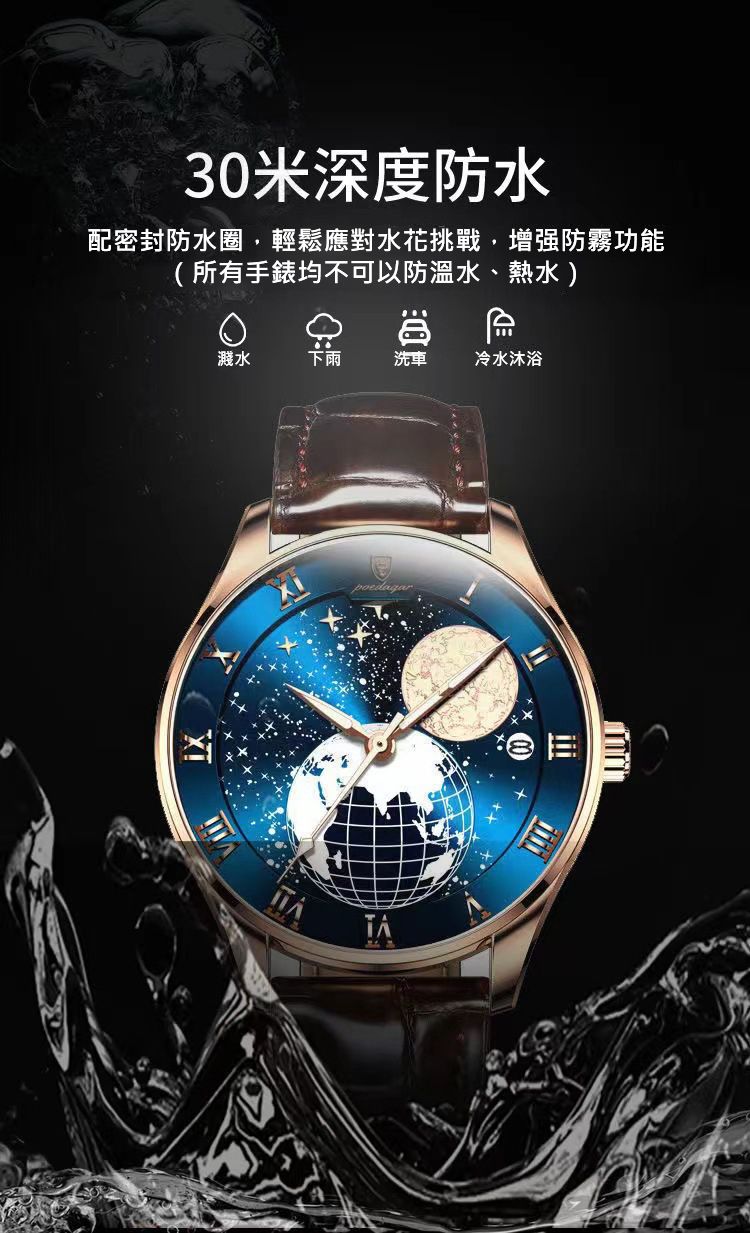 超薄日曆款防水夜光男士手錶【玫金殼藍面】一組