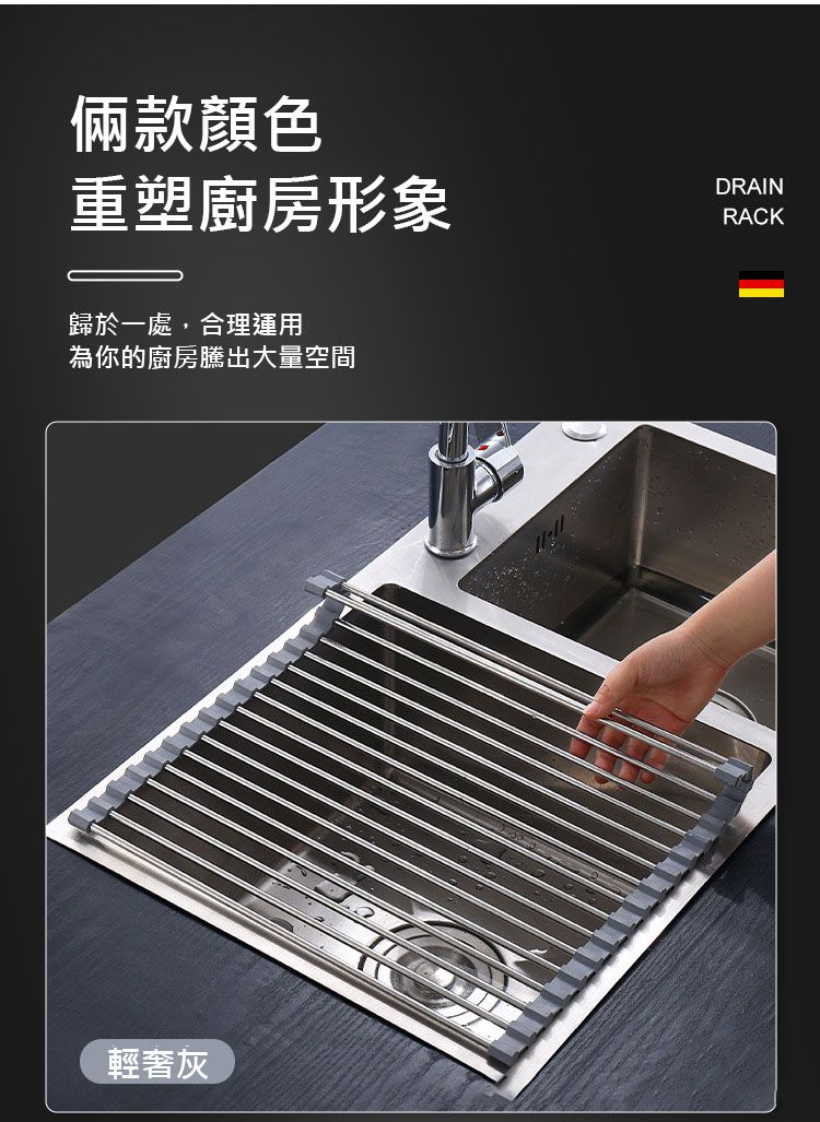 304不鏽鋼可折疊瀝水架【黑色】+【灰色】各一組(優惠400)
