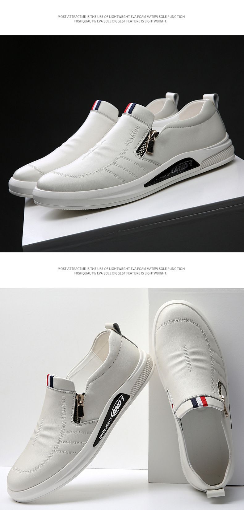 年度熱銷夏季透氣套腳休閒男鞋【買一送一】【白色】+【黑色】各一雙