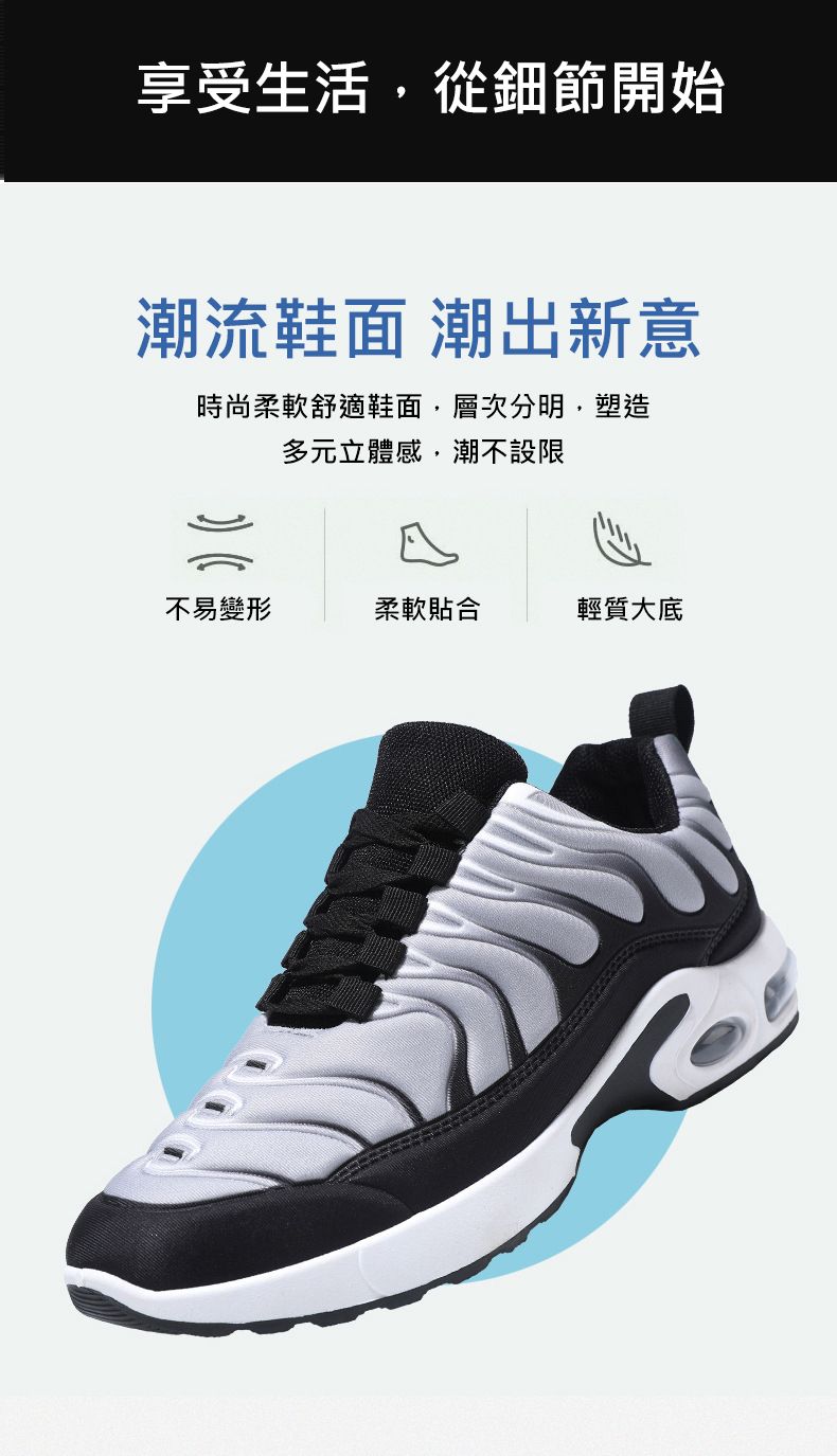 男士網布繫帶百搭運動鞋【灰色】+【藍色】各一雙(優惠400)