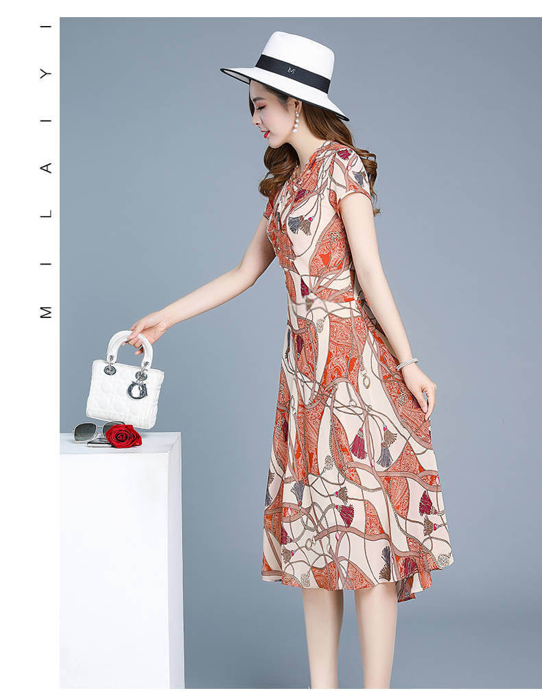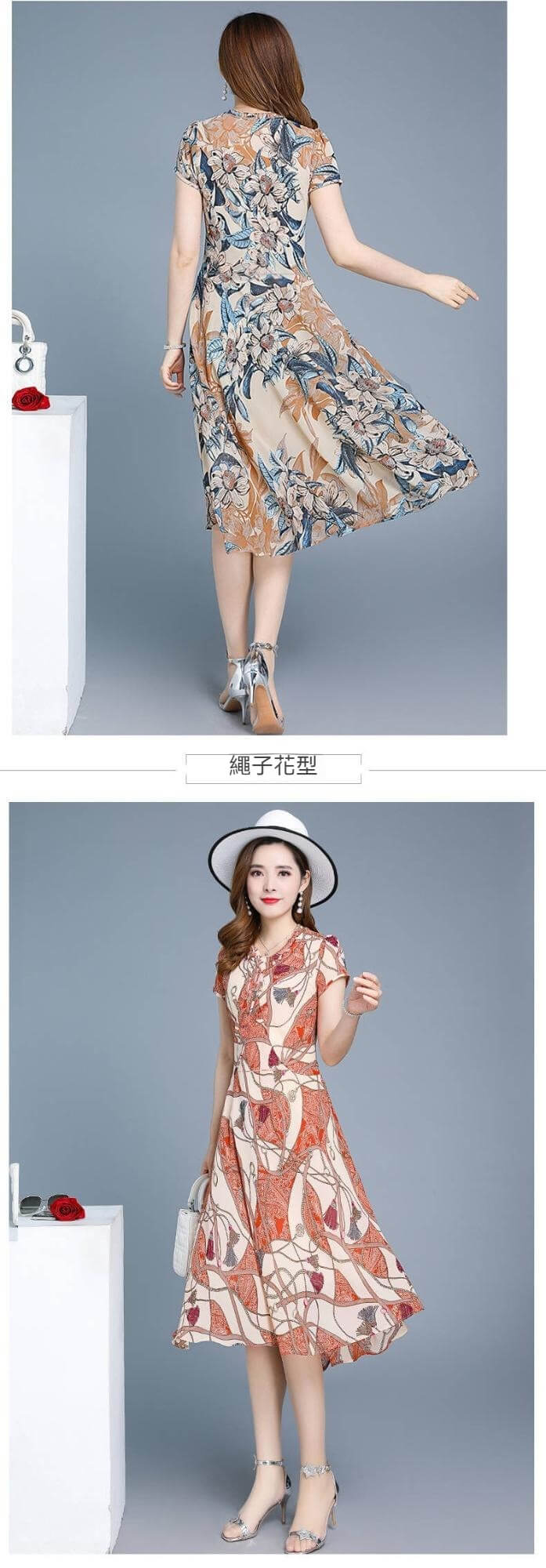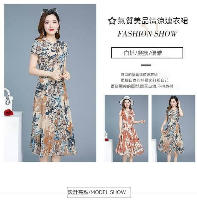 氣質清涼媽媽中長款連衣裙【秒殺4件!】藍色+磚紅色各2件(到手4件,每件均價399元)