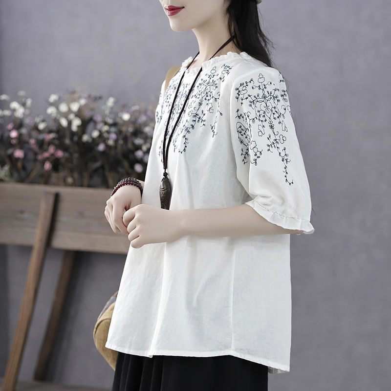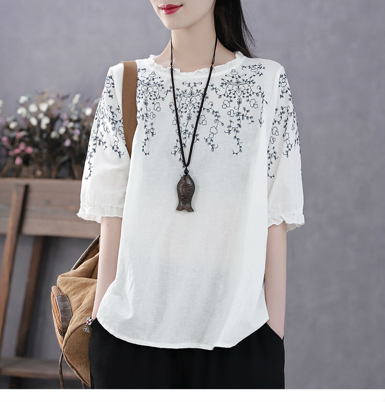 花邊洋氣寬鬆大碼上衣【白色】+【藏青色】各一件(到手兩件,每件均價499元)