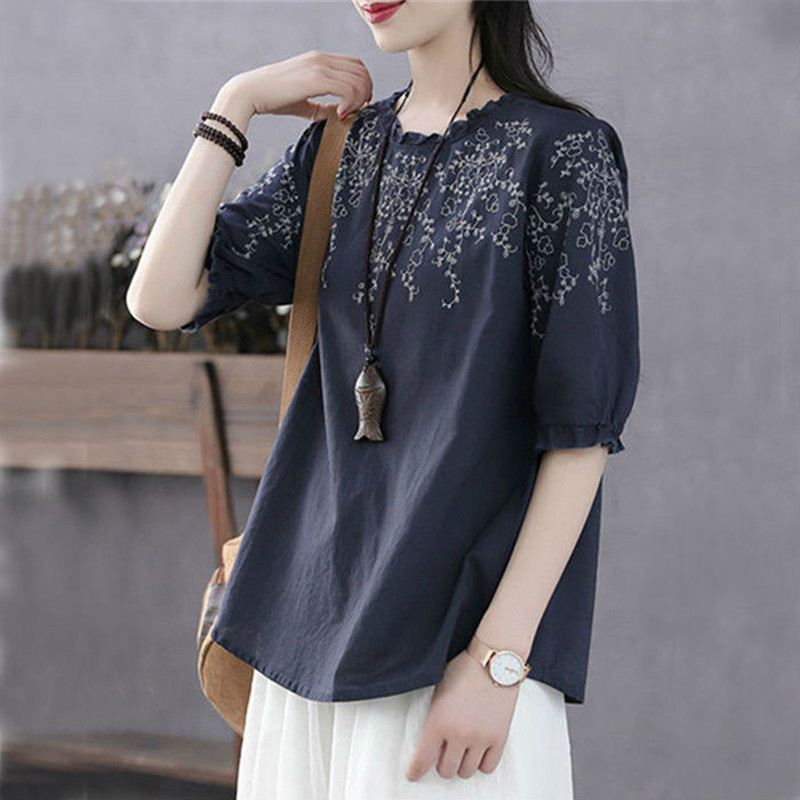 花邊洋氣寬鬆大碼上衣【藏青色】兩件(到手兩件,每件均價499元)