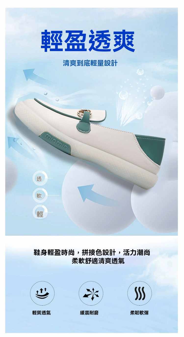 輕量設計柔韌軟彈一腳蹬女鞋【買一送一】【米咖色】+【米藍色】各一雙(到手兩雙,每雙均價549元!)