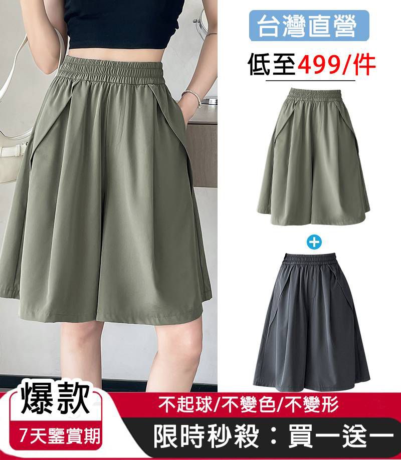 清爽舒適冰爽五分裙【買一送一】軍綠色+深灰色各一條(到手兩條,每條均價499)