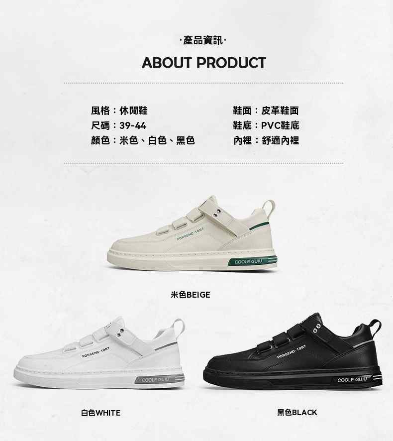 四季可穿無鞋帶皮革休閒男鞋【白色】+【米色】各一雙(到手2雙,每雙均價549元!)