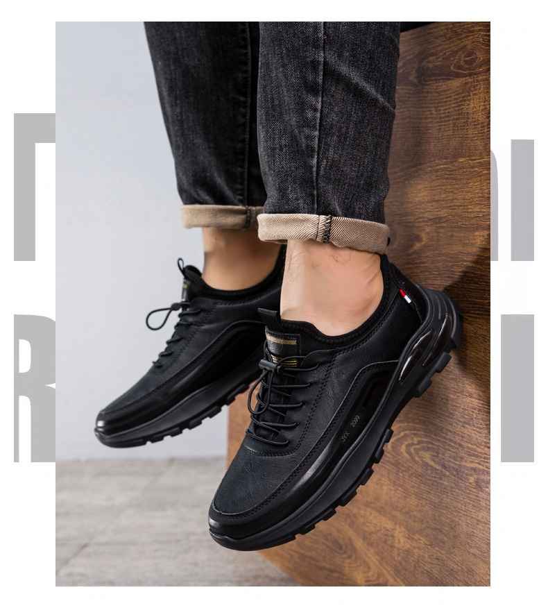 簡約流暢輕便舒適透氣皮面休閒鞋【買一送一】黑色2雙(到手2雙,每雙均價549元!)