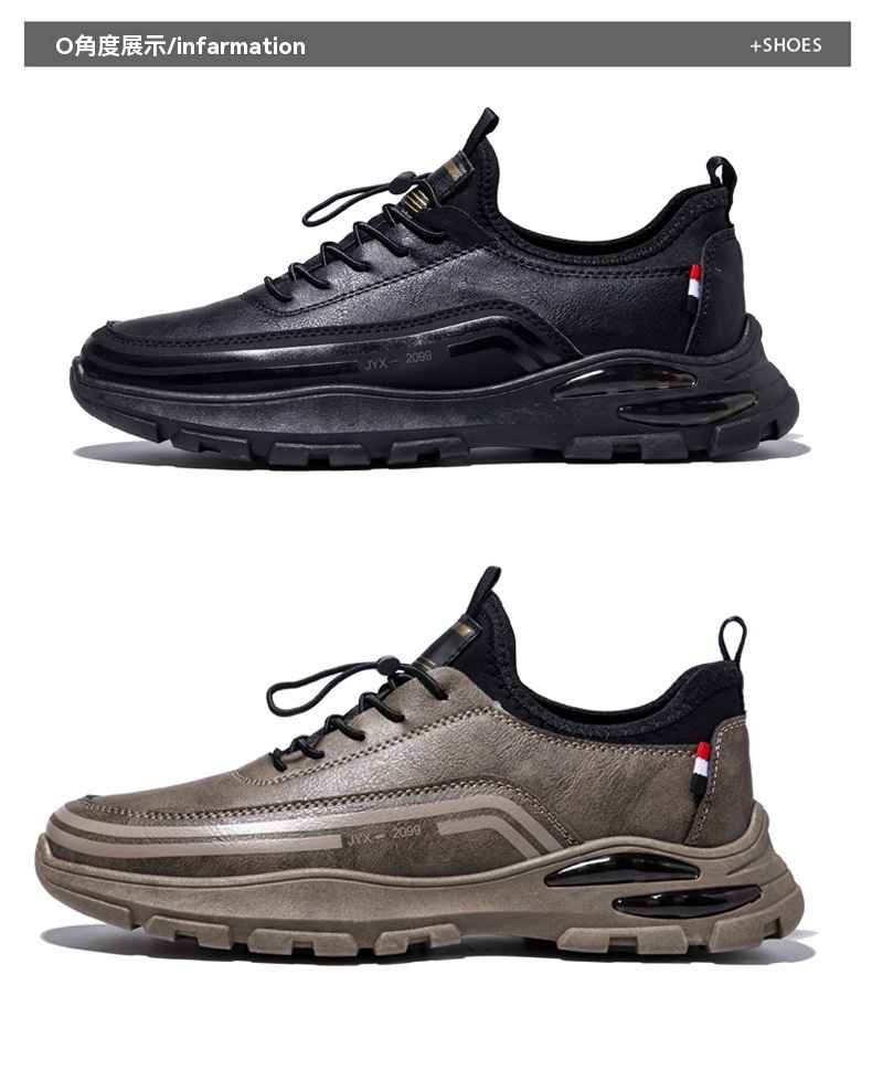 簡約流暢輕便舒適透氣皮面休閒鞋【買一送一】黑色+棕色各一雙(到手2雙,每雙均價549元!)
