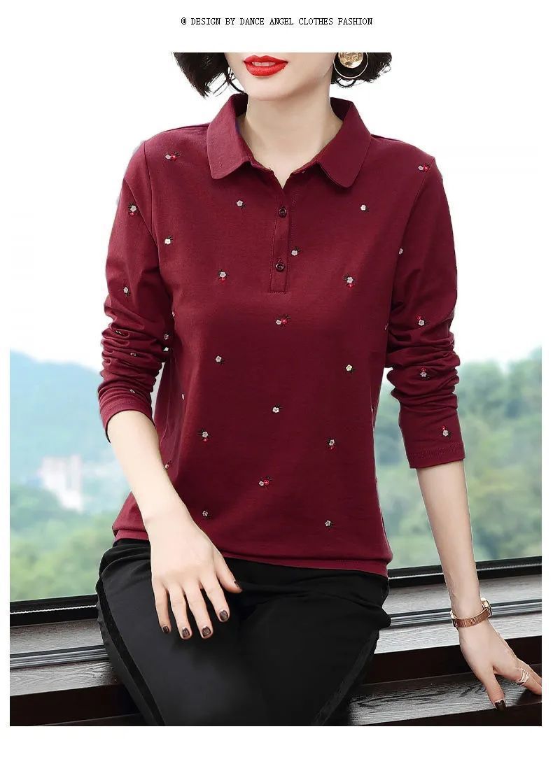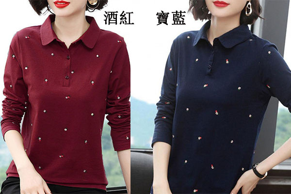 媽媽長袖T恤【買一送一】酒紅色+藍色各一件(每件549元)